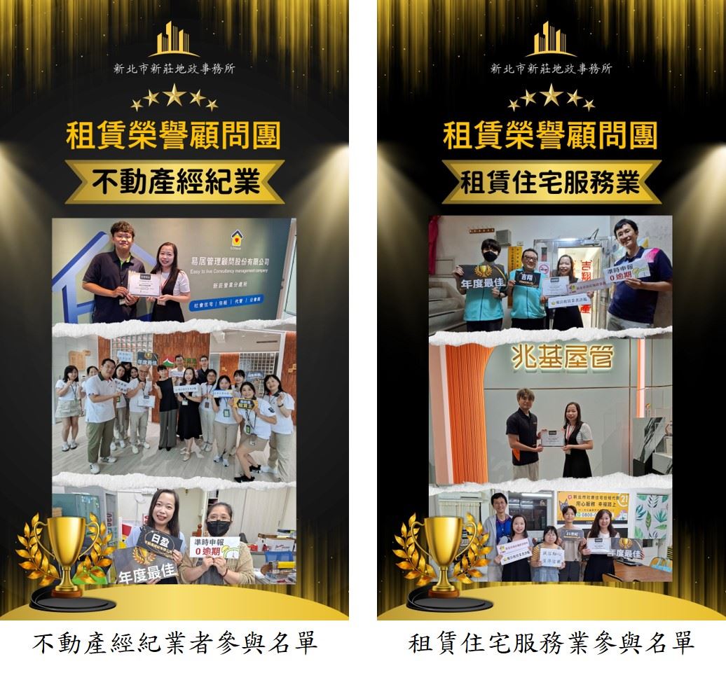 【新北市訊】新北市新莊地政事務所為確保租賃實價登錄申報業務順利推展,今年首創「租賃服務共好行動」,特別根據近2年來轄內租賃案件申報量、正確性、零逾期及查核配合度等指標,邀集表現優異的租賃申報業者:信義房屋股份有限公司、易居管理顧問股份有限公司(新莊營業分處所)、日盈不動產仲介經紀有限公司、兆基管理顧問股份有限公司、廿一世紀資產管理股份有限公司、吉翔不動產有限公司合作組成「租賃榮譽顧問團」,參與業者提供該所許多實務建議,涵蓋租屋交易安全宣導內容、簡化該所官網設計便利查找申報資訊,以及有助減輕業者負擔的更正申報便民措施等,協助該所精進相關作業,藉此強化產官交流,持續蒐集業界經驗與建言,攜手營造健全租賃服務環境。