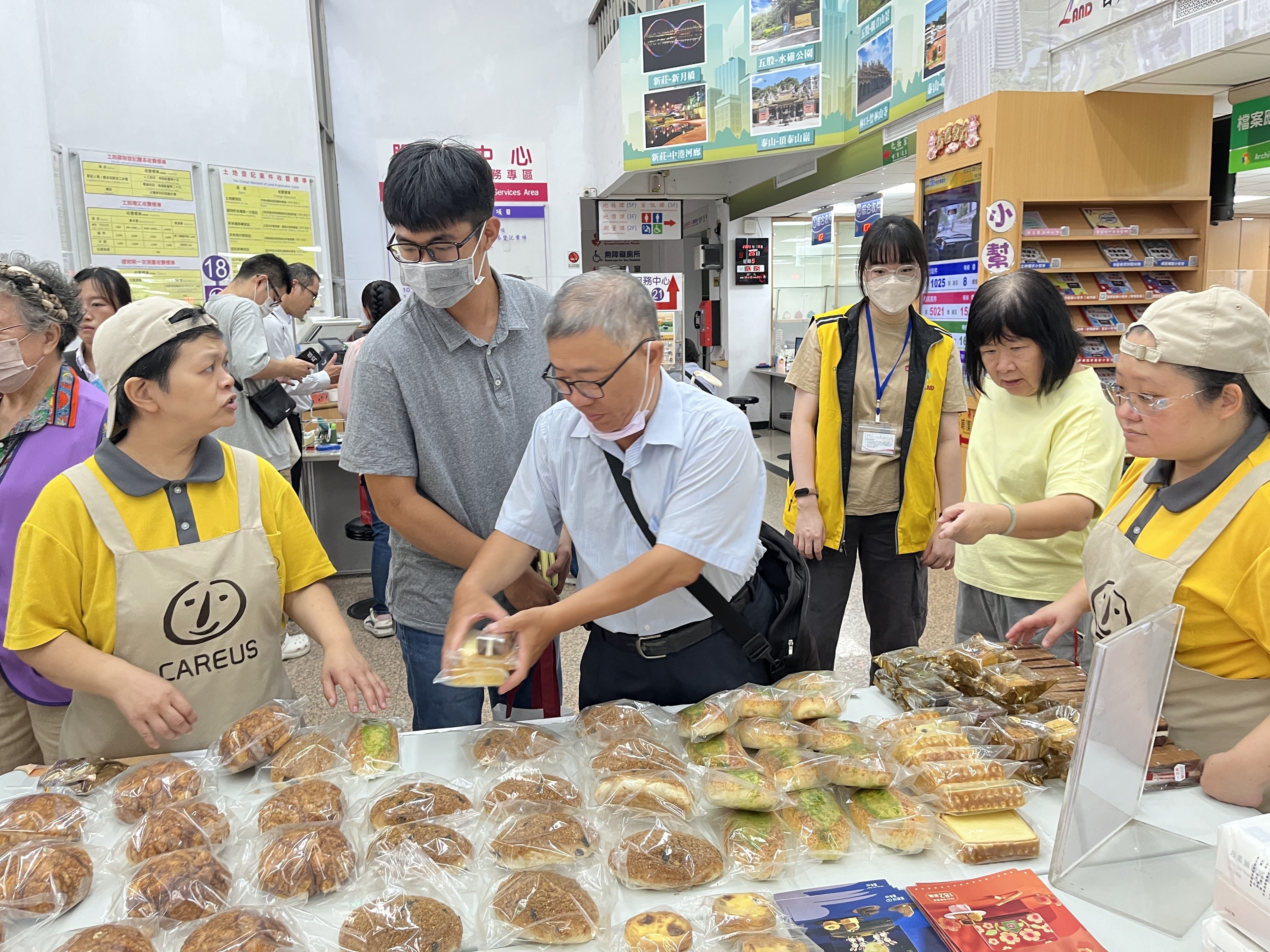 新莊地政事務所於114年9月26日上午舉辦「月圓幾米∞幸福蔓延」義賣活動,由新北市府喜憨兒烘焙屋提供美味的麵包、點心,透過愛心義賣活動,拋磚引玉邀請大眾發揮愛心、一同品嚐憨兒夥伴的手作點心,讓夥伴溫暖的笑容與您共度中秋佳節!